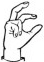 На ћирилици написано ОЗРЕН БОНЏИЋ састоји се из 11 слова [?]. Исписано ћириличном једноручном азбуком за глувонеме: